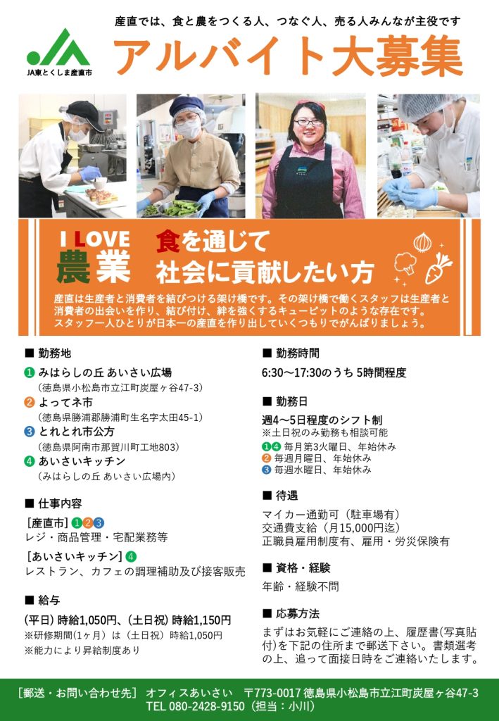 [求人] JA東とくしま産直市・アルバイト大募集!